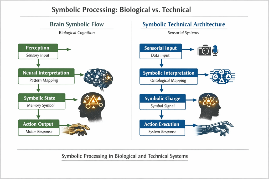 This is the same structure that underlies the Symbolic Communication Architecture. Just as technical systems in this architecture coordinate through symbolic charge, the brain coordinates its internal processes through symbolic patterns.